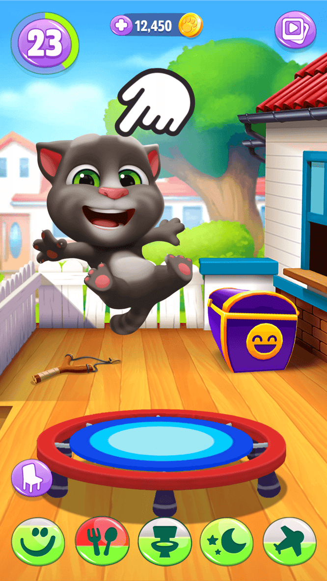 Enhanced Interactivity and Activities: A standout feature is the physical interaction with Talking Tom. Players can pick him up, drop him, throw him, and spin him around using "ragdoll" mechanics. Beyond basic care, players can teach cat tricks game mechanics, allowing them to teach Talking Tom skills like drums basketball boxing.